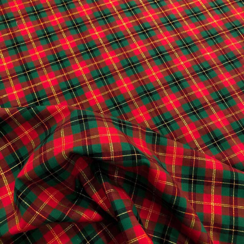 Tricoline Natal Xadrez Fio Tinto Com Lurex Dourado 100% Algodão - Rena 1039