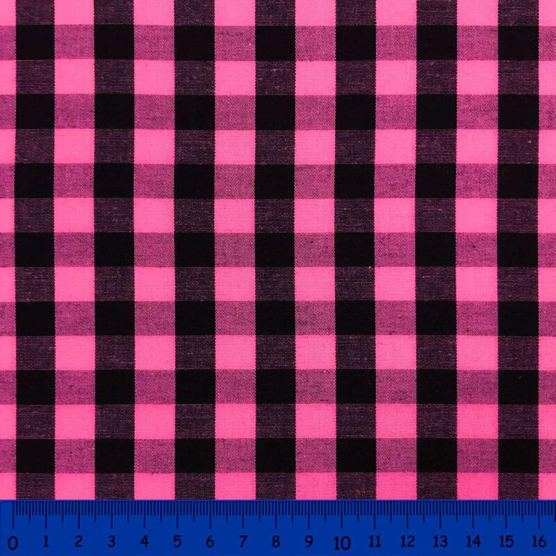 Tricoline Xadrez Fio Tinto - Extra Grande - 100% Algodão - Pink Com Preto