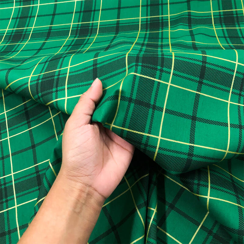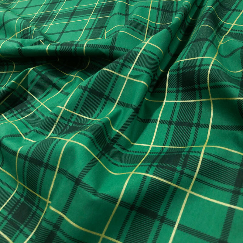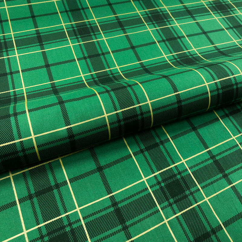 Tricoline Estampada Natal Xadrez Com Dourado 100% Algodão 1,50M Largura - Verde