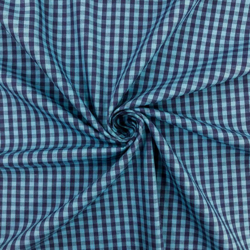 Tricoline Xadrez Fio Tinto - Grande - 100% Algodão - Azul Com Marinho