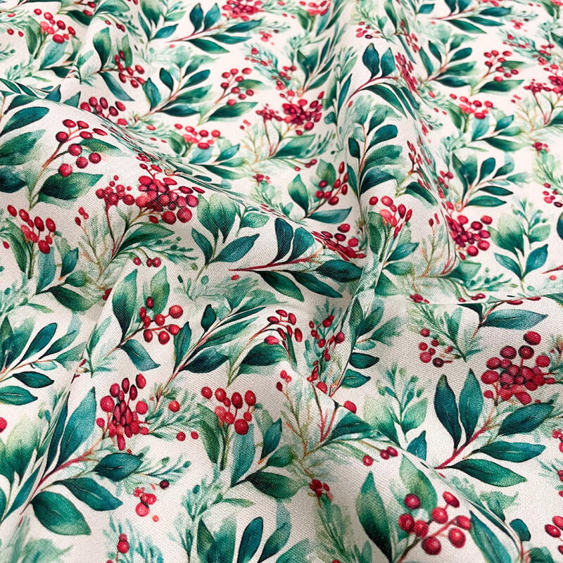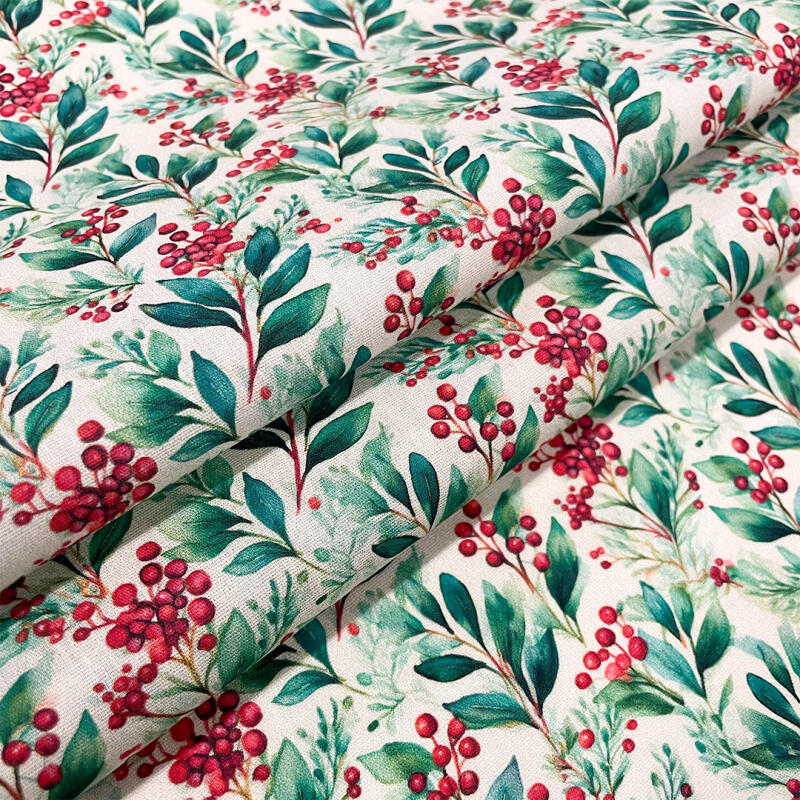Tricoline Exclusiva Coleção Natal Ramos Azevinho 100% Algodão 1,50M Largura - Variante 1