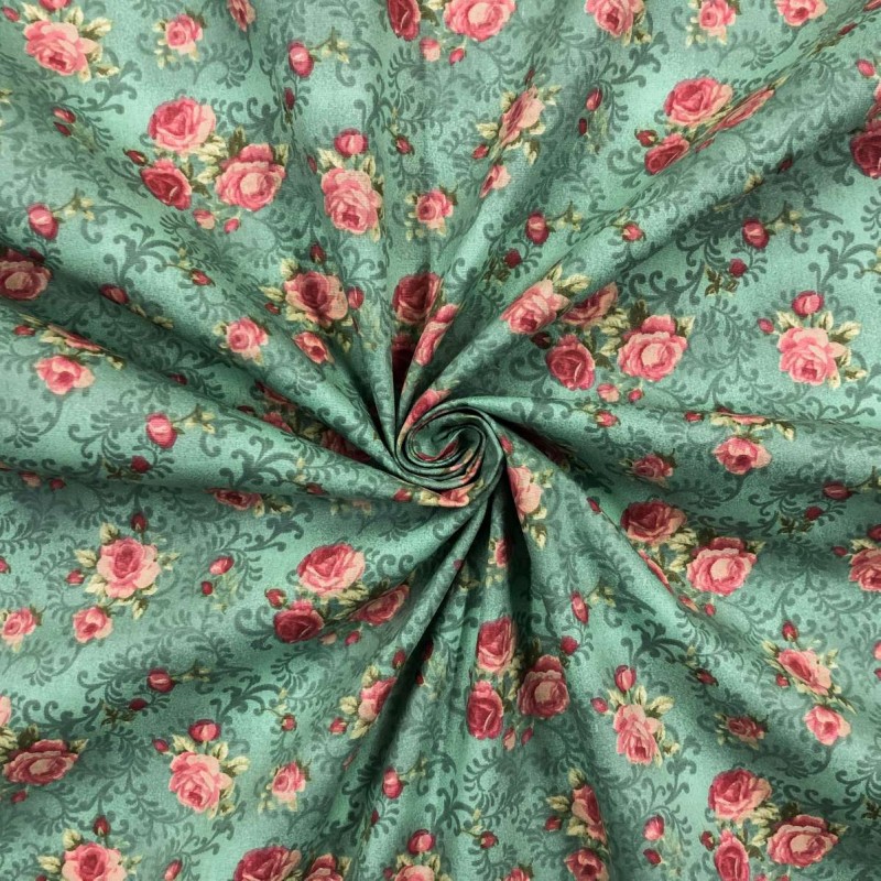 Tricoline Fernando Maluhy - Mini Rosas Arabesco - 100% Algodão - C02