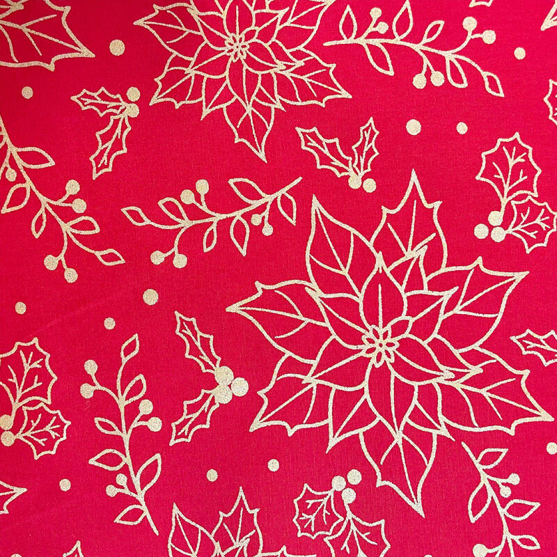 Tricoline Natal Contorno Flores Com Glitter 100% Algodão - 1,50M Largura - Vermelho