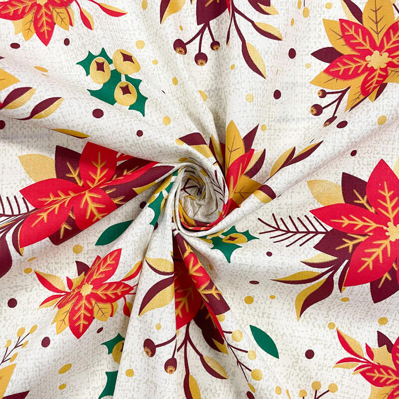 Tricoline Natal Flor Glitter Fundo Palha 100% Algodão 1,50M Largura - Variante 1