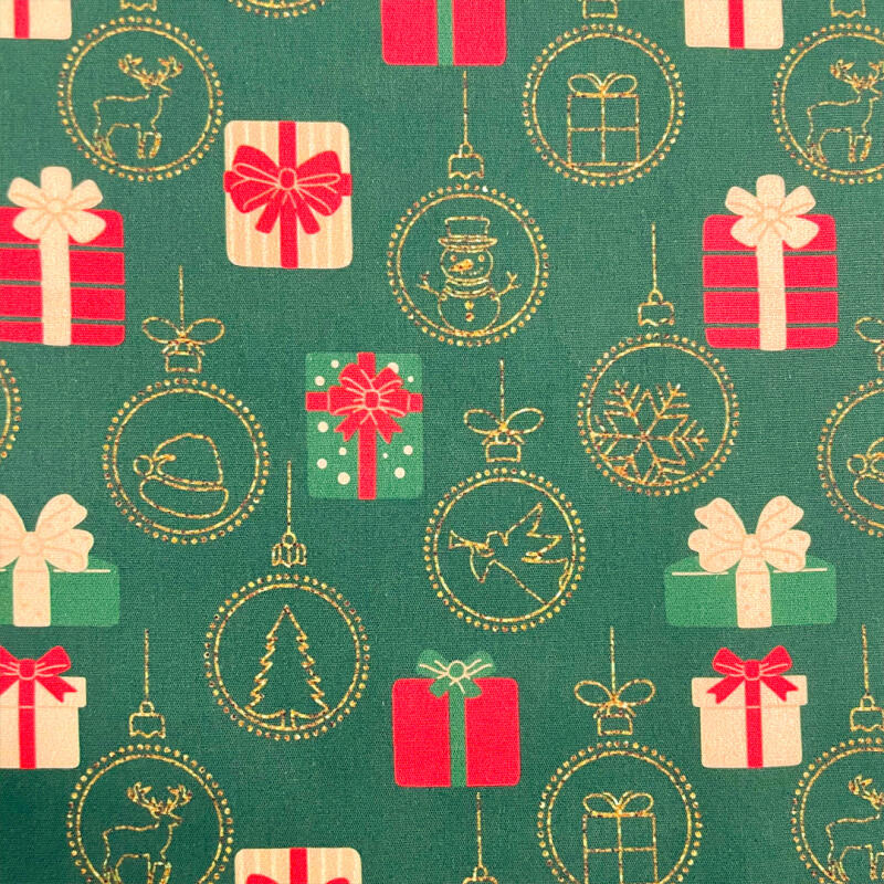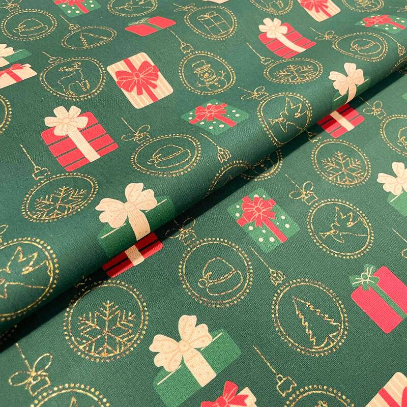 Tricoline Natal Presentes Fundo Verde 100% Algodão - 1,50M Largura - Variante 1