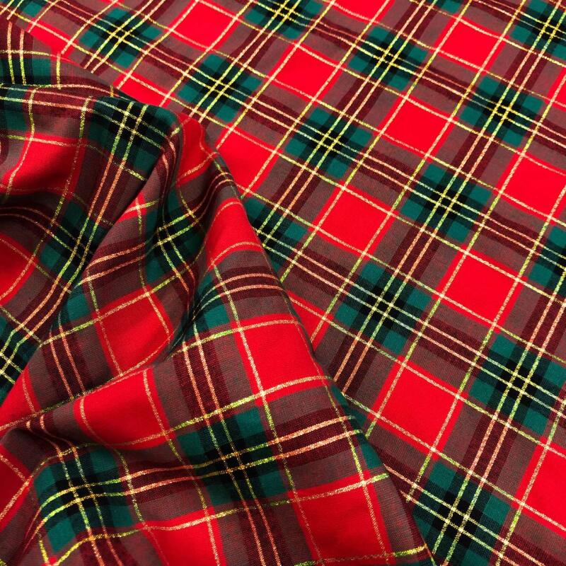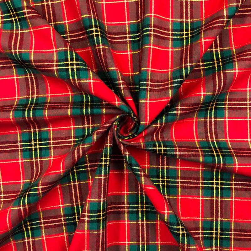 Tricoline Natal Xadrez Fio Tinto Com Lurex Dourado 100% Algodão - Rena 1032