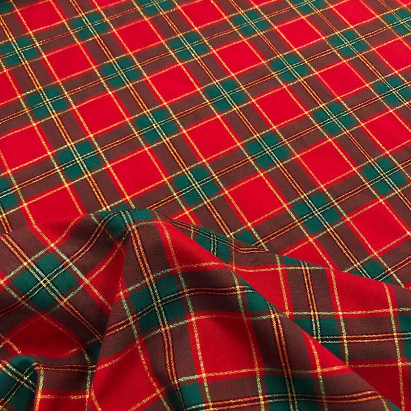 Tricoline Natal Xadrez Fio Tinto Com Lurex Dourado 100% Algodão - Rena 1035