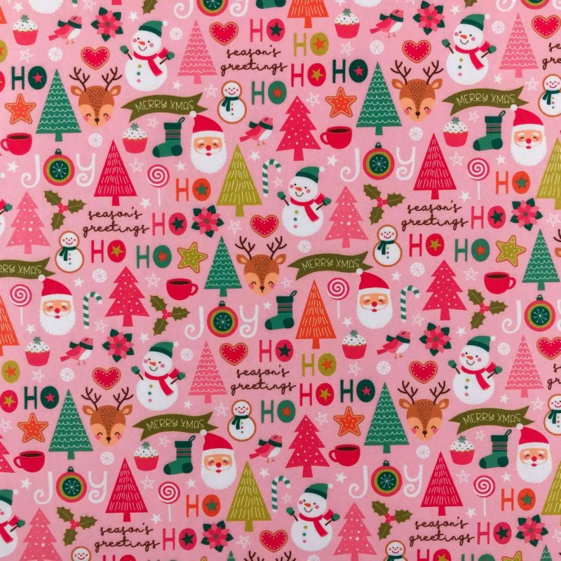 Microfibra Digital (Tactel) - Natal Rosa Candy - 100% Poliéster - Variante 1
