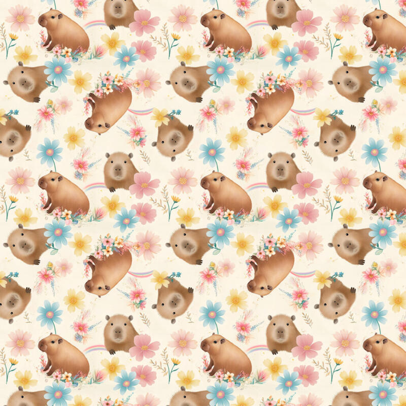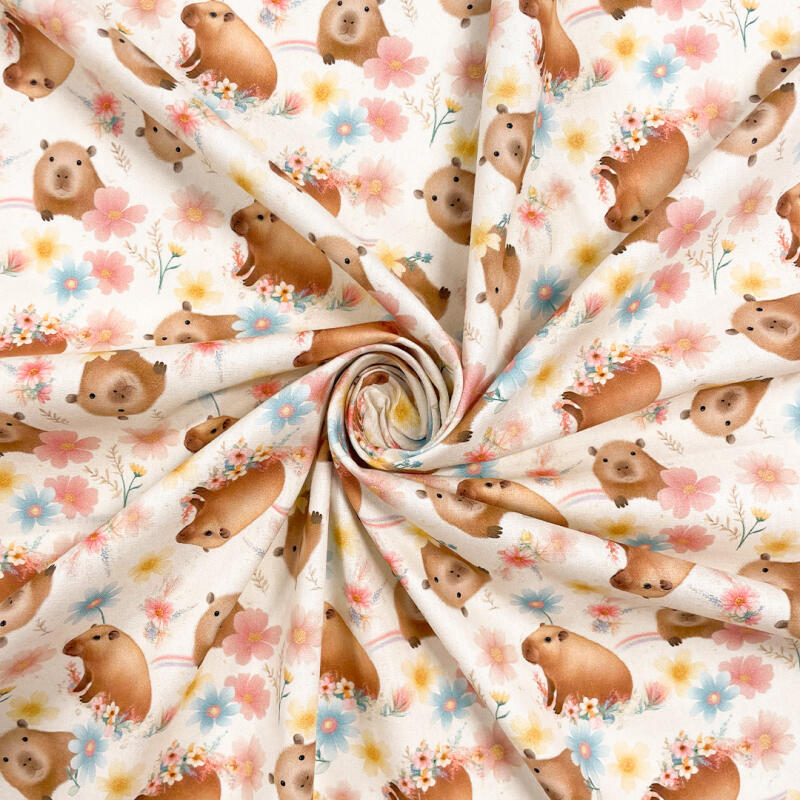 Tricoline Estampada Capivaras Com Florzinhas 100% Algodão 1,50M Largura - Variante 1