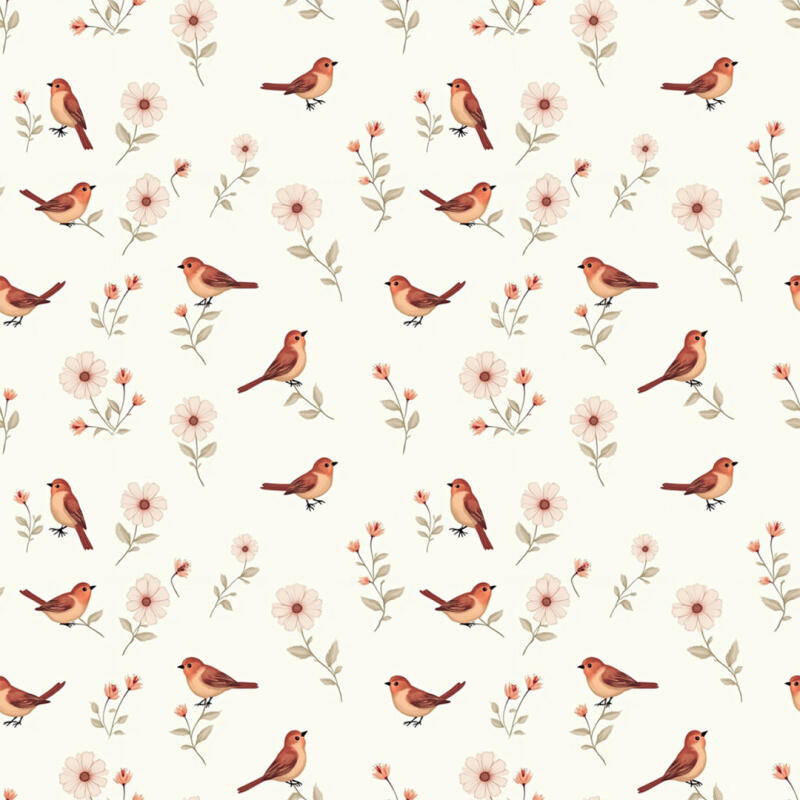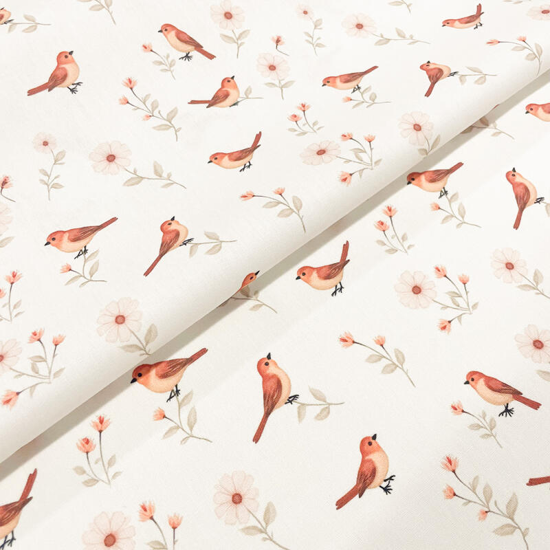 Tricoline Estampada Passarinhos Fundo Creme 100% Algodão 1,50M Largura - Variante 1