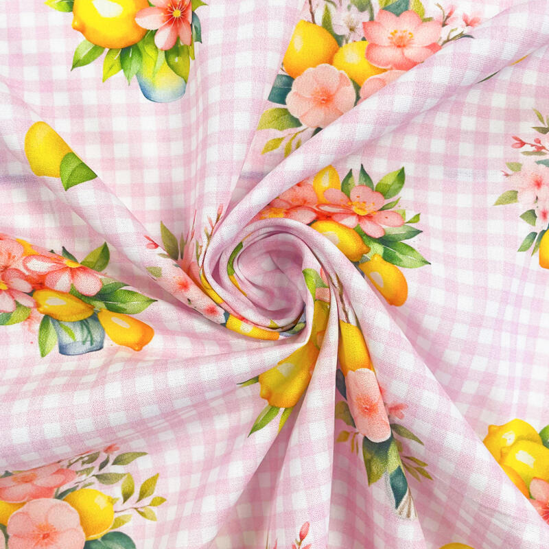 Tricoline Digital Fernando Maluhy Coleção Limão Siciliano 100% Algodão 1,50M Largura - Fundo Rosa
