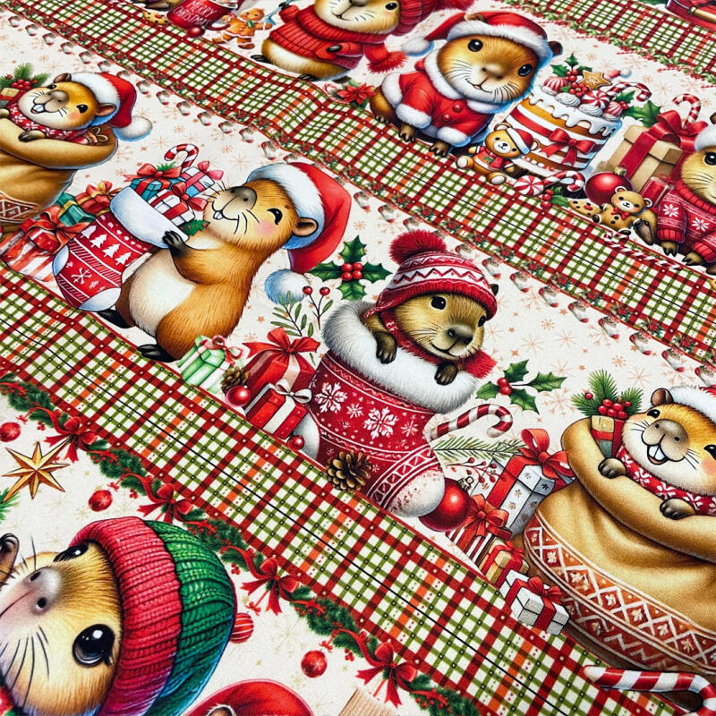 Painel Tricoline Digital Fernando Maluhy Barrado Capivaras Natalinas 0,55 X 1,50M 6 Faixas Largas - C01