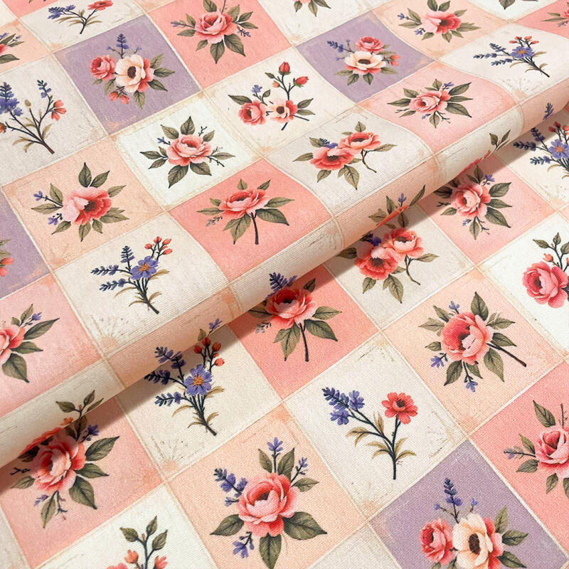 Tricoline Estampada Patchwork Floral 100% Algodão 1,50M Largura - Variante 1