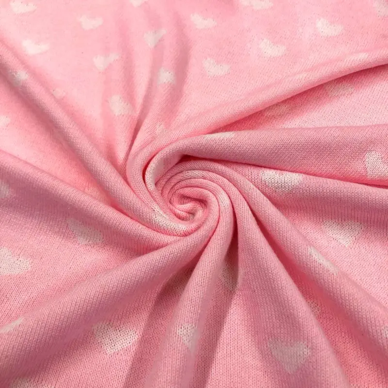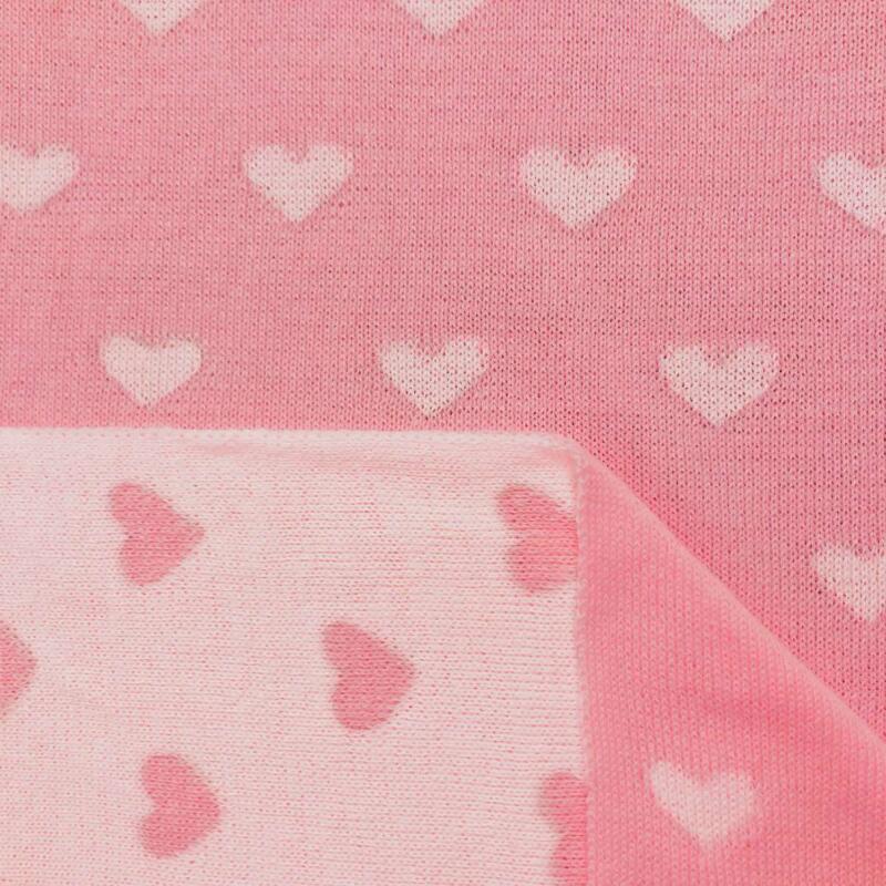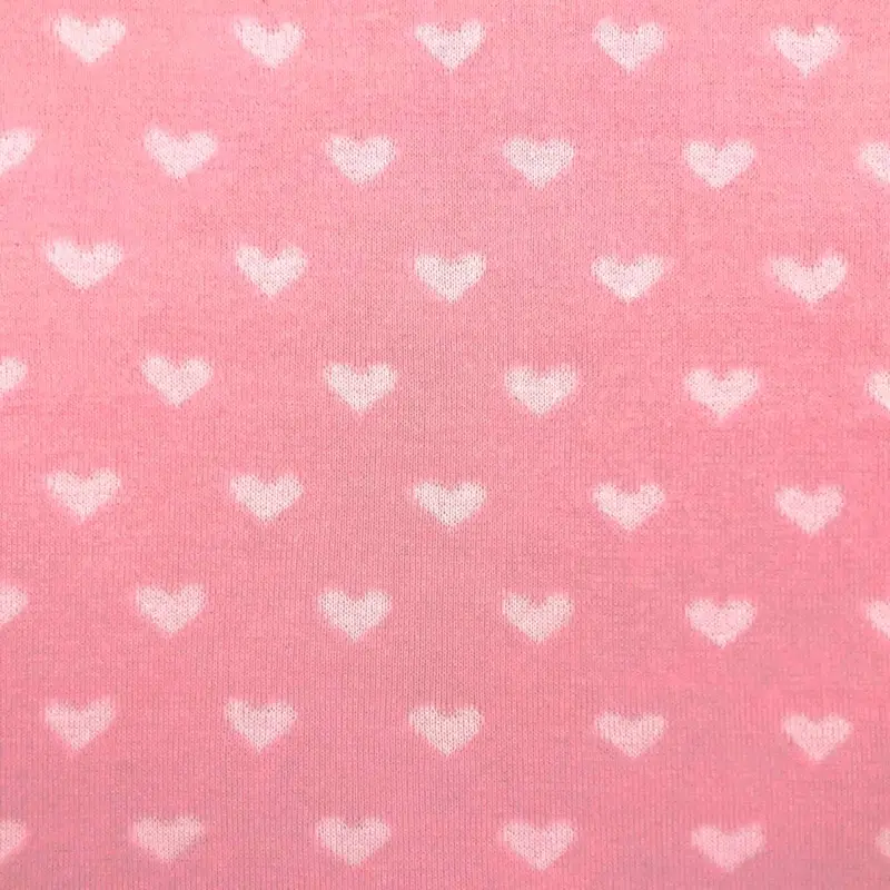 Tecido Tricot Com Desenhos Em Metro 50% Algodão 50% Acrílico 1M Largura - Coracao Rosa Com Off