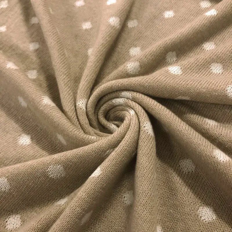 Tecido Tricot Com Desenhos Em Metro 50% Algodão 50% Acrílico 1M Largura - Poa Bege Com Off