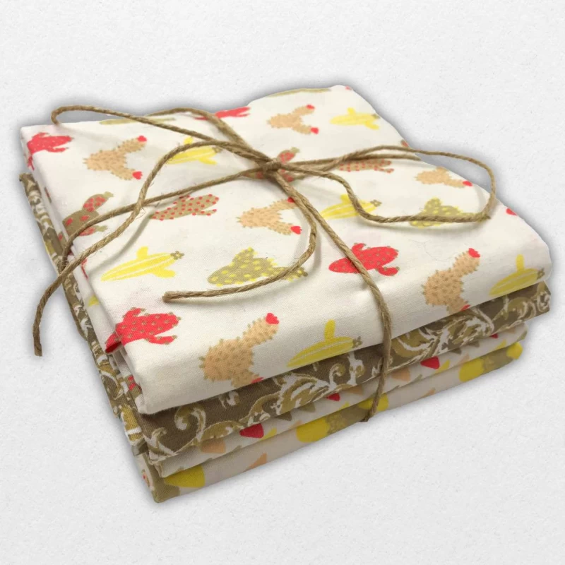 Disponíveis em unidades limitadas, possuem 4 estampas de 50 cm cada feitas com carinho para suas criações, totalizando 2 metros de tecido em seu pacote.