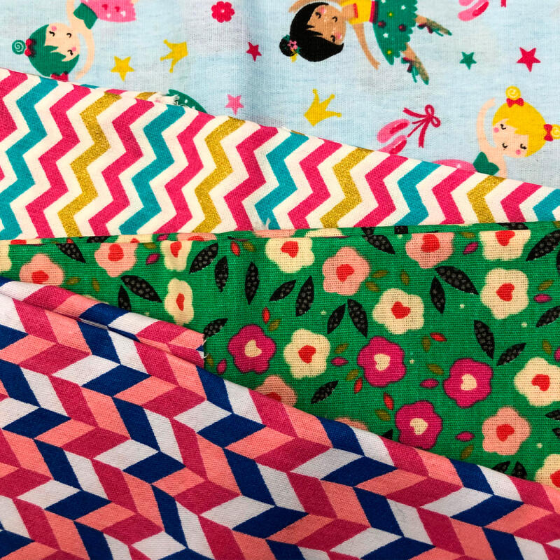 Disponíveis em unidades limitadas, possuem 4 estampas de 50 cm cada feitas com carinho para suas criações, totalizando 2 metros de tecido em seu pacote.