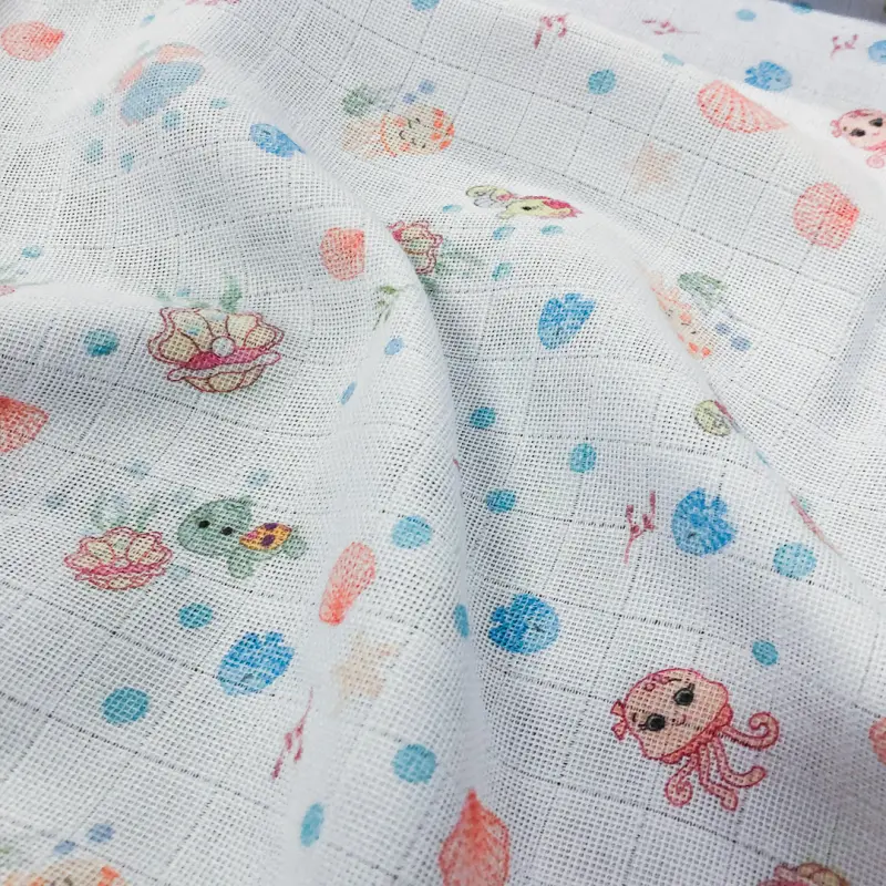 Tecido Fralda Mabber Estampada Fundo Do Mar 100% Algodão 0,80M Largura - Variante 1