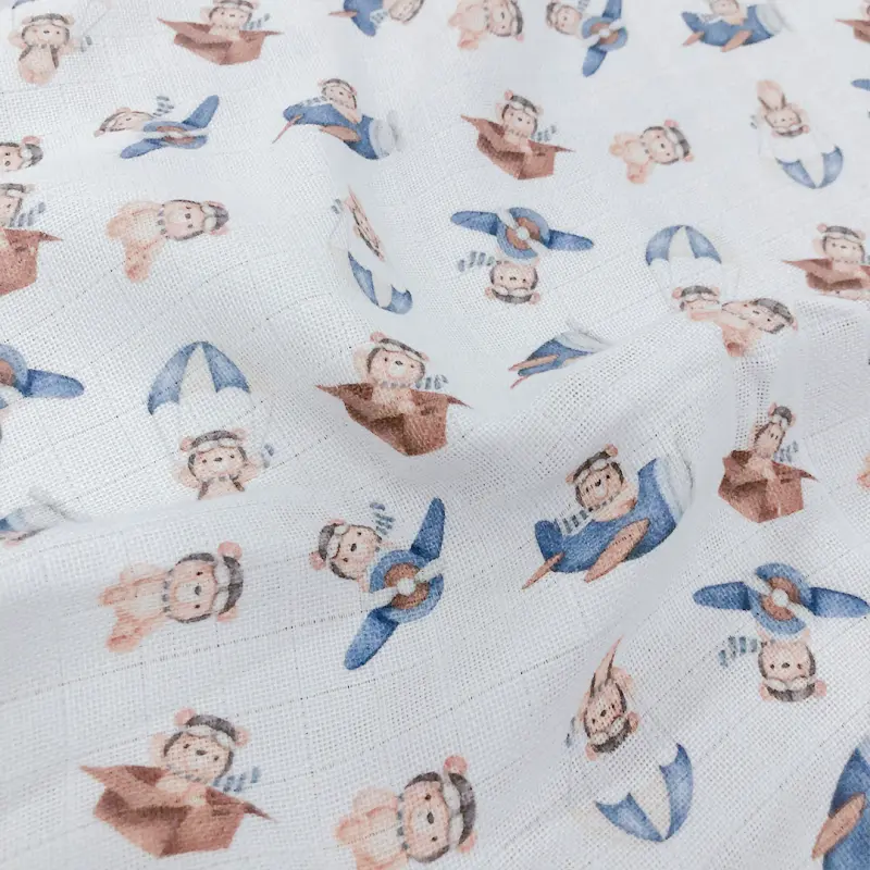 Tecido Fralda Mabber Estampada Ursinho Aviador 100% Algodão 0,80M Largura - Variante 1