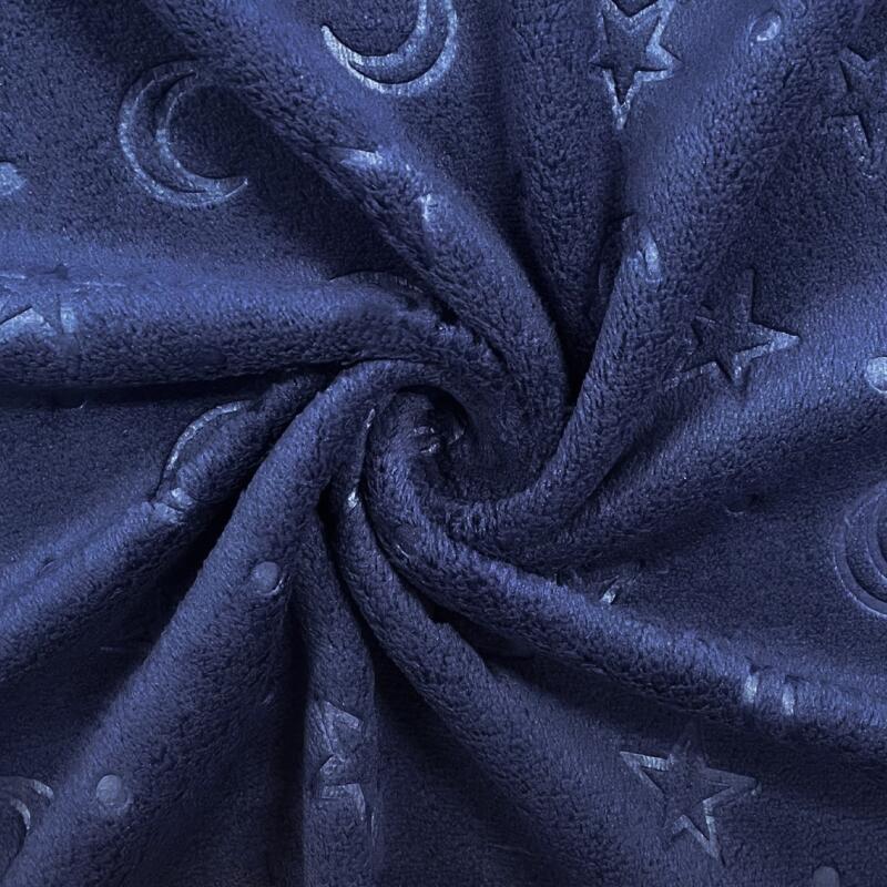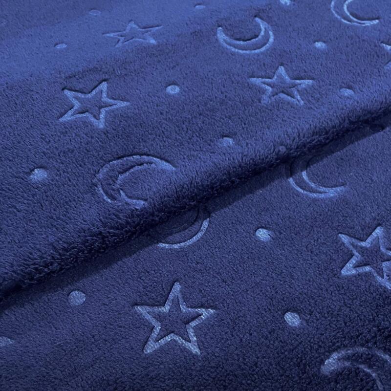 Manta Fleece Calandrada Infantil Lua E Estrela 100% Poliéster 1,60M Largura - Azul Marinho