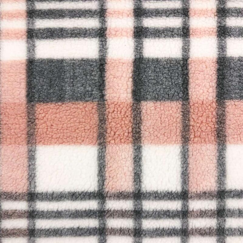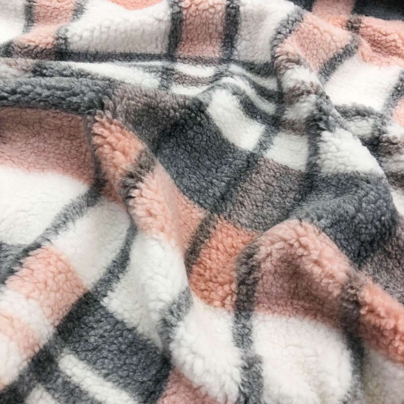 Pelúcia Carapinha Estampada 100% Poliéster 1,60M Largura - Xadrez Rosa Pó