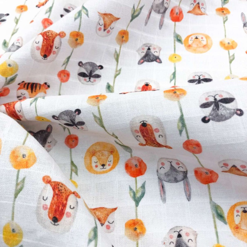 Fralda Estampa Exclusiva Jlm Rostinhos Animais 100% Algodão 0,75M Largura - Variante 1