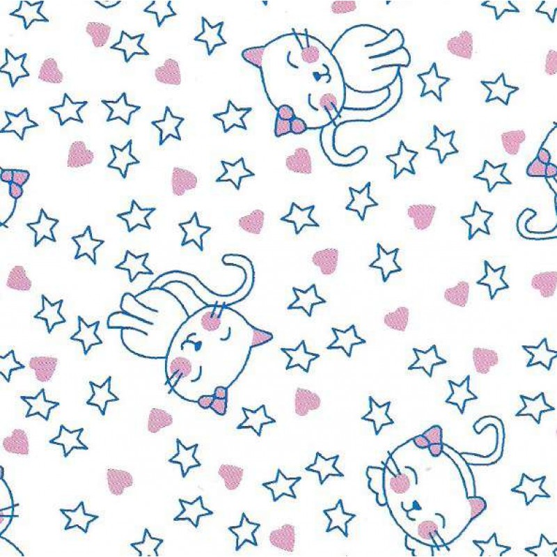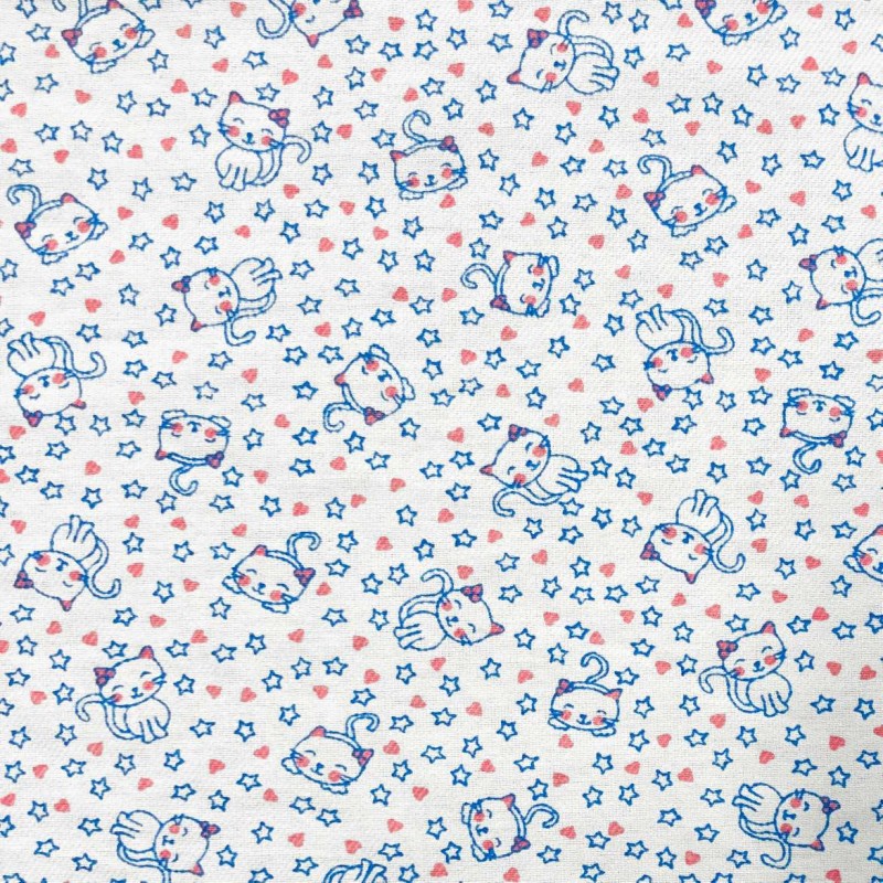 Flanela Cueiro Estampada - Gatinha Feliz - 100% Algodão - Variante 1