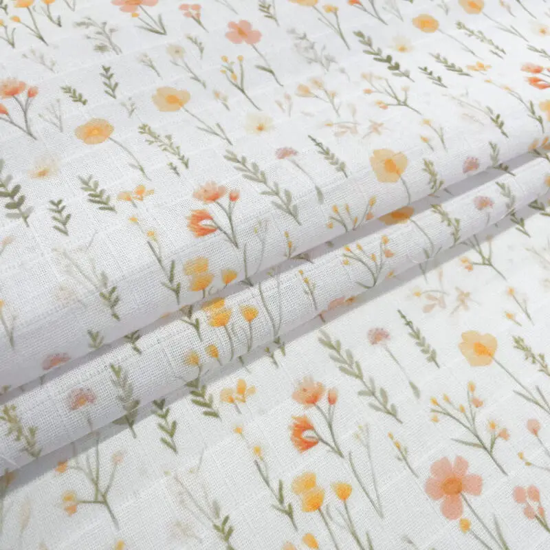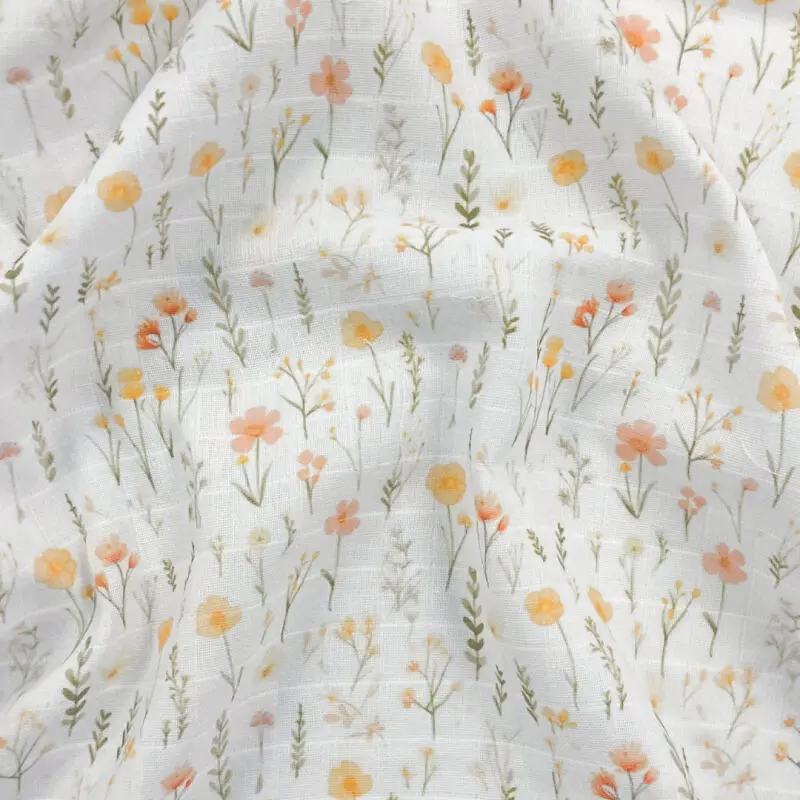 Fralda Estampa Exclusiva Jlm Coleção Ramos Florais 100% Algodão 0,75M Largura - Tons De Amarelo
