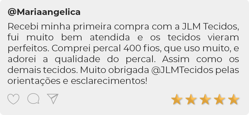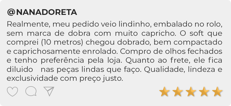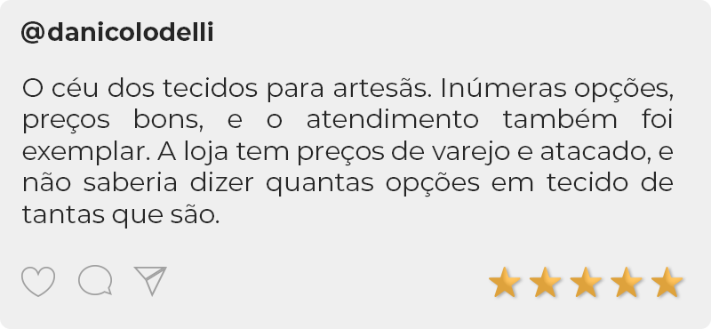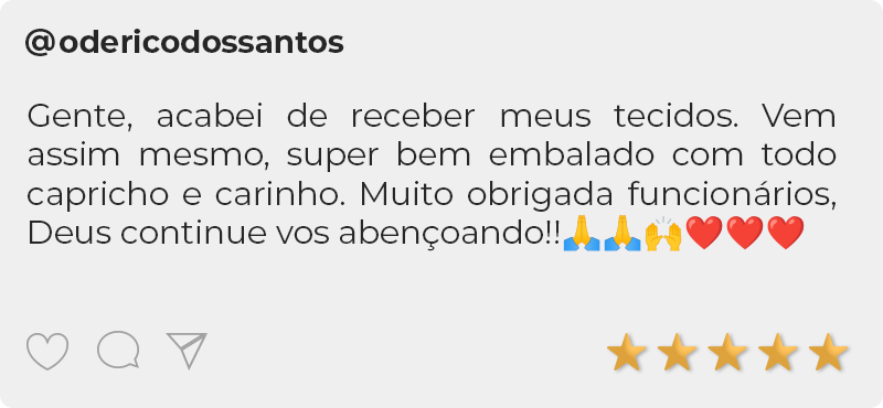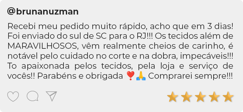 Fique tranquilo! Caso o tecido não seja como você imaginava, você tem até 7 dias após o recebimento para solicitar a devolução ou a troca através do nosso WhatsApp. Nós cuidamos de todo o processo de forma simples, sem burocracia e não terá custo algum para você.