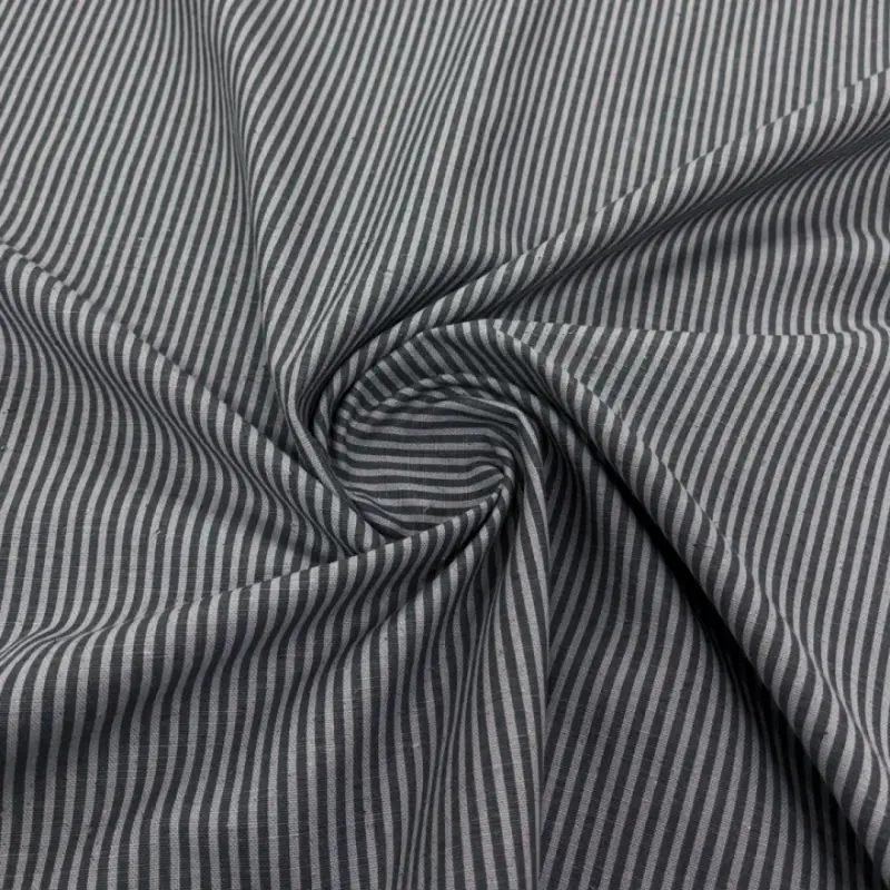 Linho Estampado Premium Listras 80% Algodão 20% Linho - Cinza