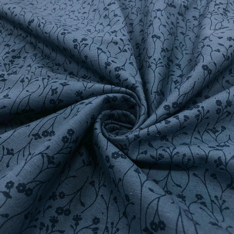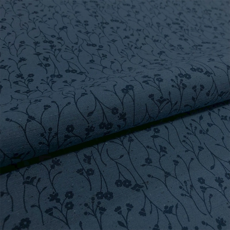 Linho Estampado Premium Raminhos Composê 80% Algodão 20% Linho - Azul