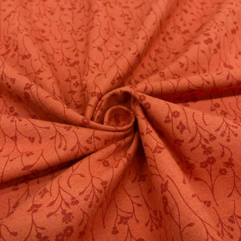 Linho Estampado Premium Raminhos Composê 80% Algodão 20% Linho - Laranja