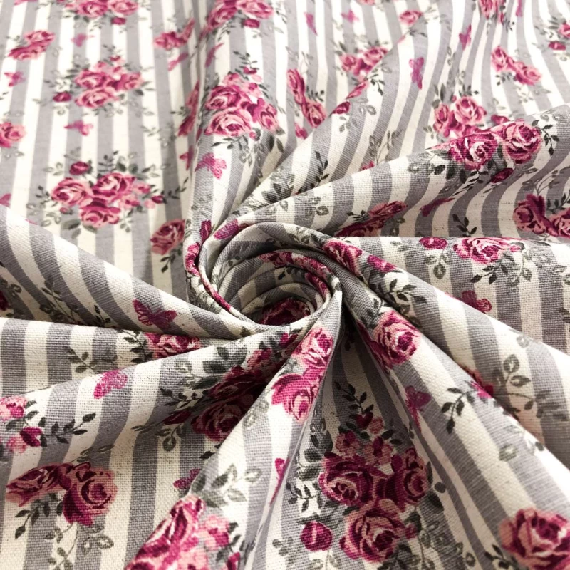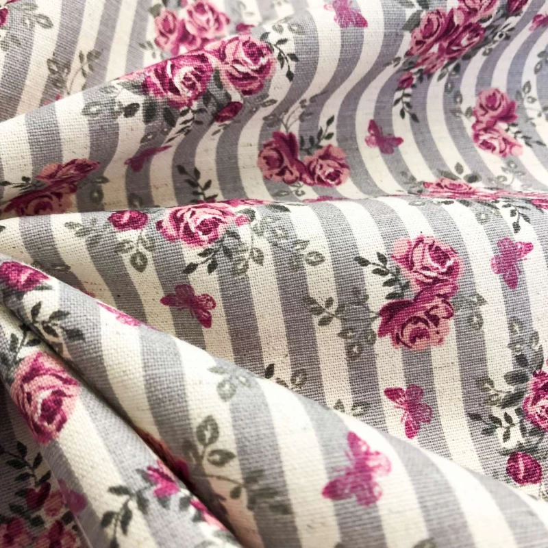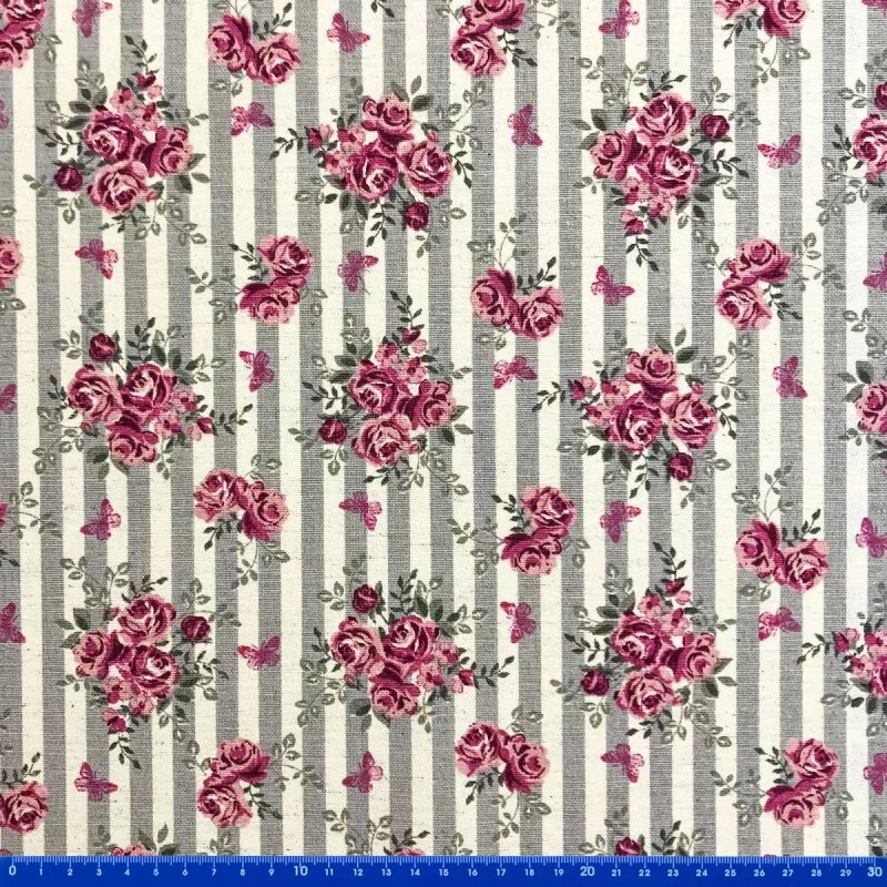 Linho Estampado Premium Ramos Com Listras 80% Algodão 20% Linho 1,53M Largura - Variante 1