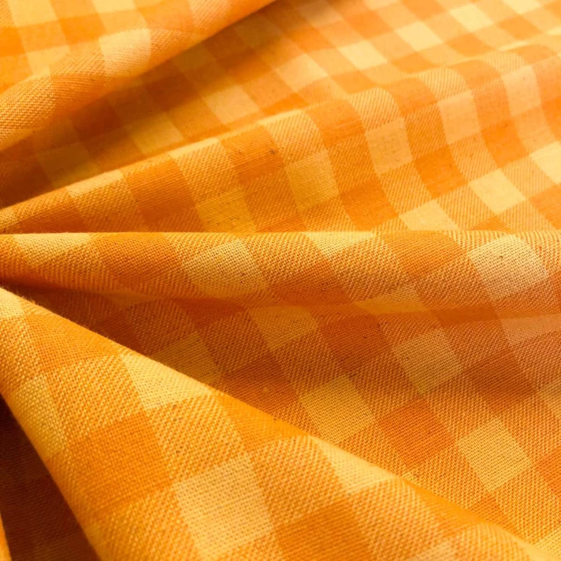 Linho Estampado Premium Xadrez 80% Algodão 20% Linho - Mostarda