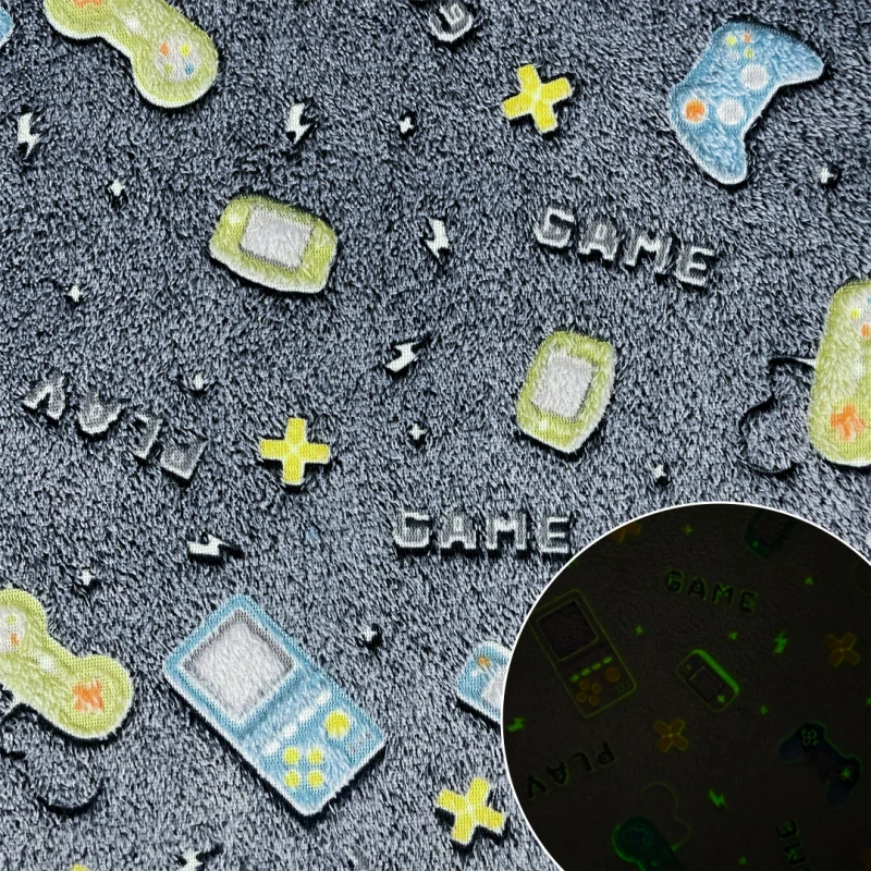 Manta Fleece Brilha No Escuro Vídeo Game 100% Poliéster 1,60M Largura - Fundo Preto