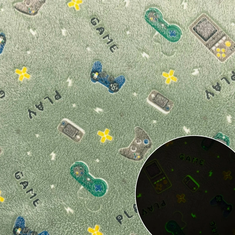Manta Fleece Brilha No Escuro Vídeo Game 100% Poliéster 1,60M Largura - Fundo Verde