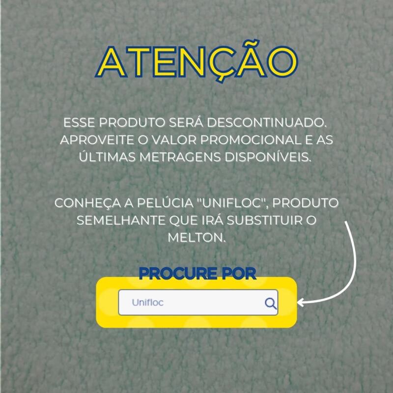ESSE PRODUTO SERÁ DESCONTINUADO. APROVEITE O VALOR PROMOCIONAL E AS ÚLTIMAS METRAGENS DISPONÍVEIS. CONHEÇA O PRODUTO UNIFLOC, PRODUTO SEMELHANTE QUE IRÁ SUBSTITUIR O MELTON.