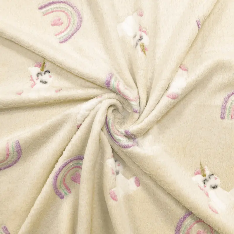 Manta Fleece 3D Arco Íris Cute 100% Poliéster 1,60M Largura - Off White