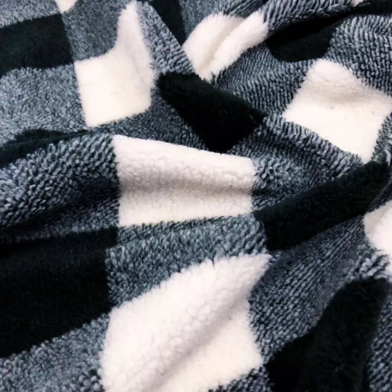 Pelúcia Carapinha Estampada 100% Poliéster 1,60M Largura - Xadrez Marinho