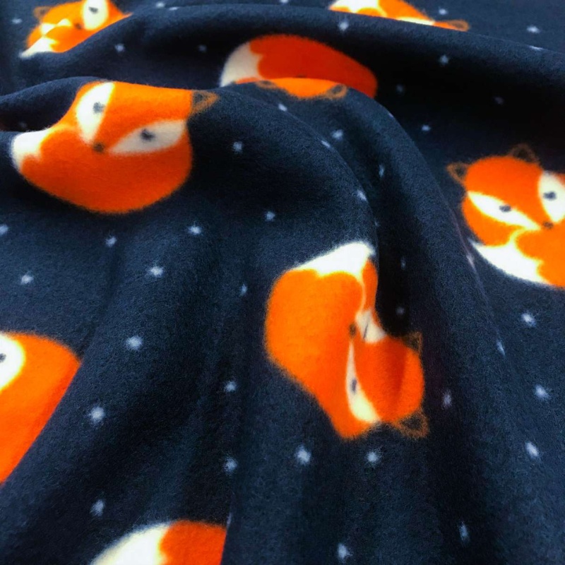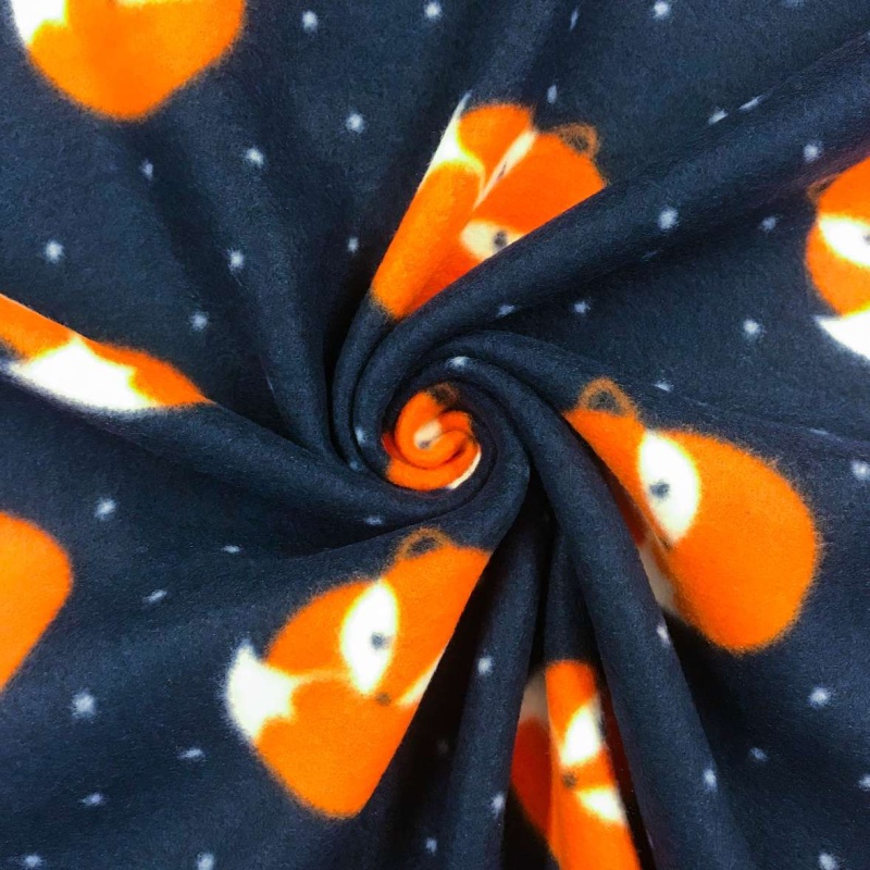 Soft Estampado - Raposa Fundo Marinho - 100% Poliéster - 1,60M Largura - Variante 1