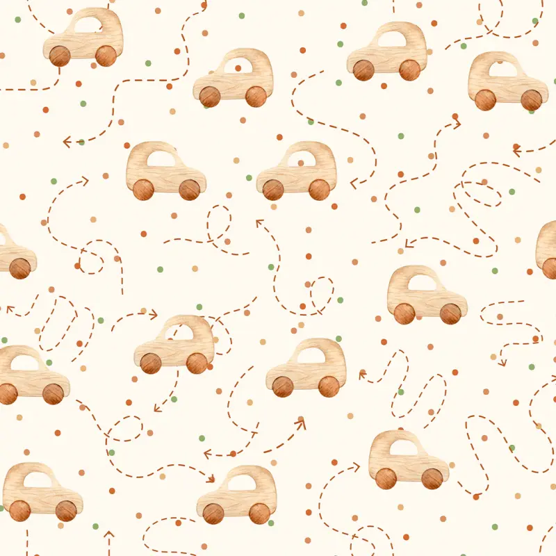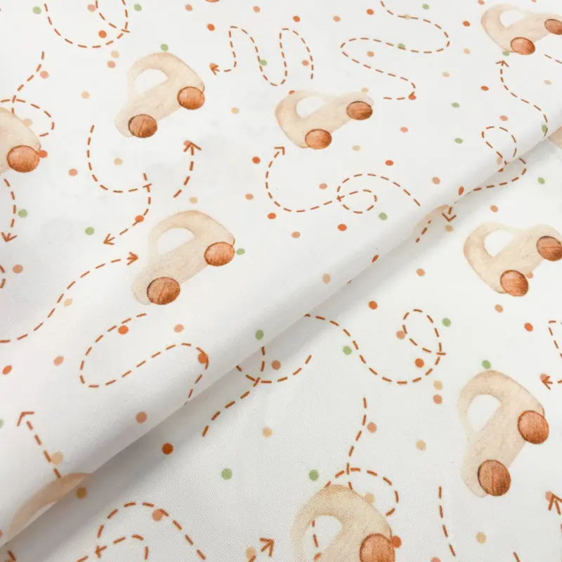 Microfibra Tactel Digital Estampa Exclusiva Carrinhos Amadeirados 100% Poliéster - Variante 1