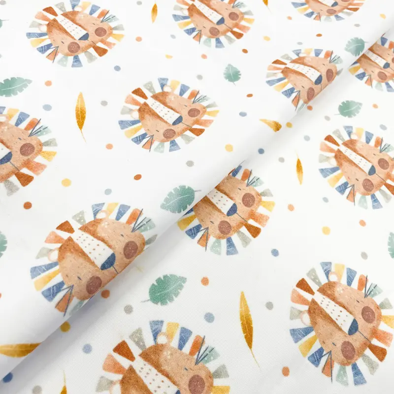 Microfibra Tactel Digital Estampa Exclusiva Rostinho Leão Boho 100% Poliéster - Variante 1
