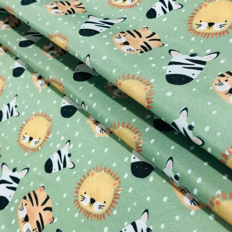 Microfibra Tactel Digital Estampa Exclusiva Rostos Animais Com Poá 100% Poliéster - Variante 1