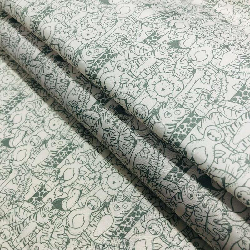 Microfibra Tactel Digital Estampa Exclusiva Selva Contorno Animais 100% Poliéster - Variante 1