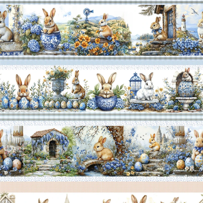 Painel Tricoline Pascoa Barrado Cenário Azul 0,55 X 1,50M 10 Faixas - Variante 1