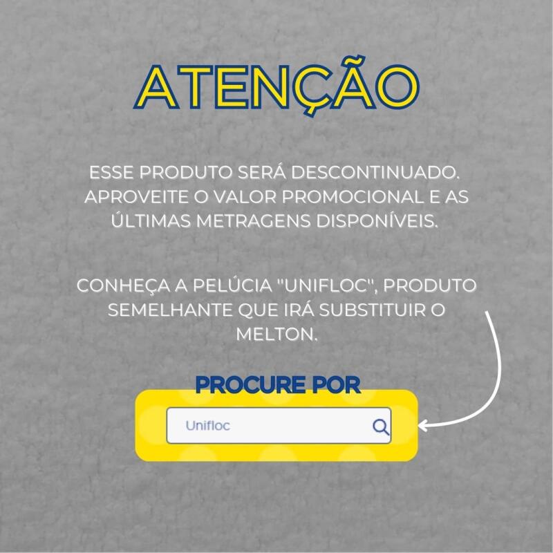 ESSE PRODUTO SERÁ DESCONTINUADO. APROVEITE O VALOR PROMOCIONAL E AS ÚLTIMAS METRAGENS DISPONÍVEIS. CONHEÇA O PRODUTO UNIFLOC, PRODUTO SEMELHANTE QUE IRÁ SUBSTITUIR O MELTON.