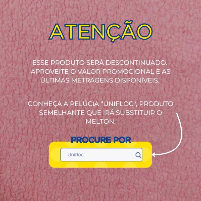 ESSE PRODUTO SERÁ DESCONTINUADO. APROVEITE O VALOR PROMOCIONAL E AS ÚLTIMAS METRAGENS DISPONÍVEIS. CONHEÇA O PRODUTO UNIFLOC, PRODUTO SEMELHANTE QUE IRÁ SUBSTITUIR O MELTON.