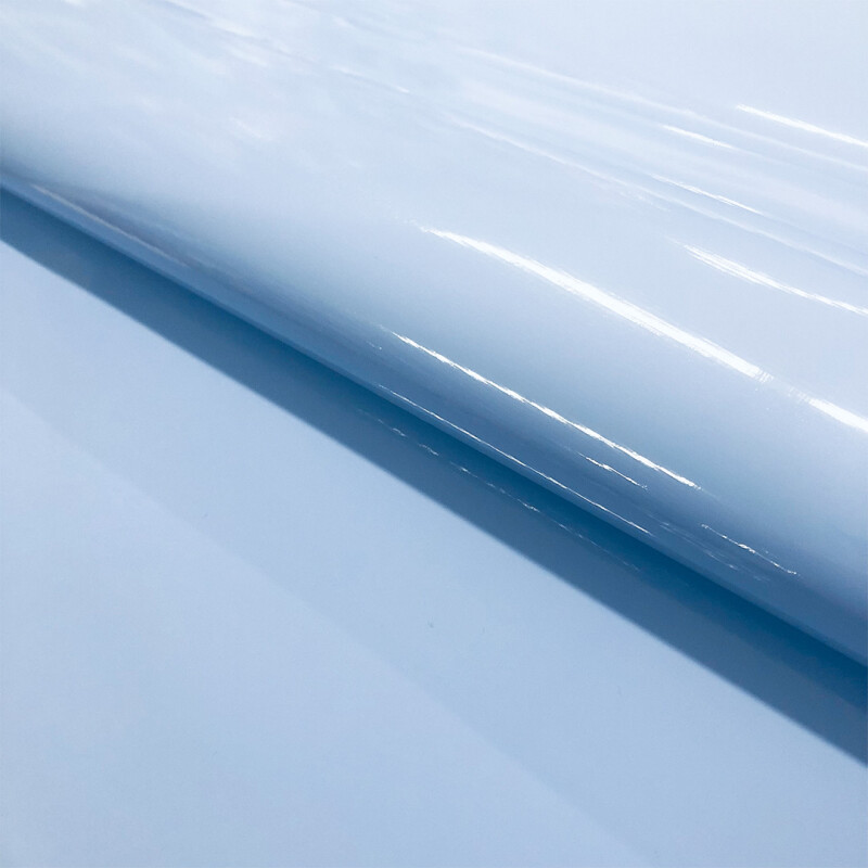 Sintético Verniz Espessura 0.35Mm Fundo Malha De Poliéster 1,40M Largura - Azul Bebê