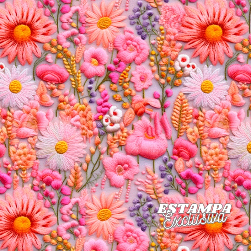 Sarja Impermeável Exclusiva Coleção Dimensões Florais 100% Algodão 1,50M Largura - Sweet Pink