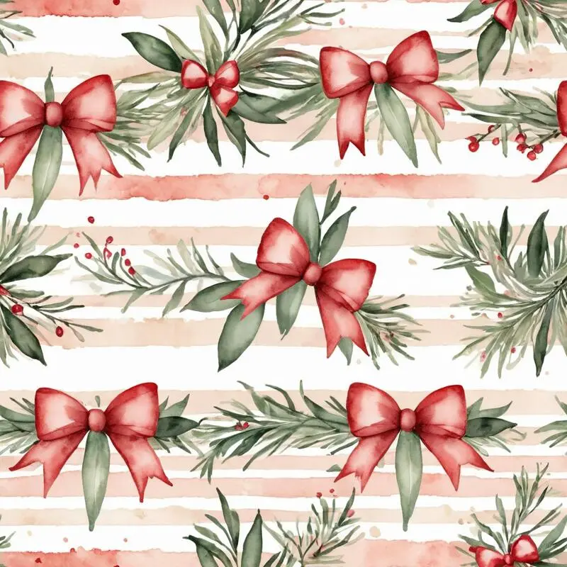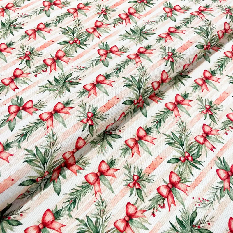 Sarja Impermeável Exclusiva Coleção Natal Laços Aquarelados 100% Algodão 1,50M Largura - Variante 1